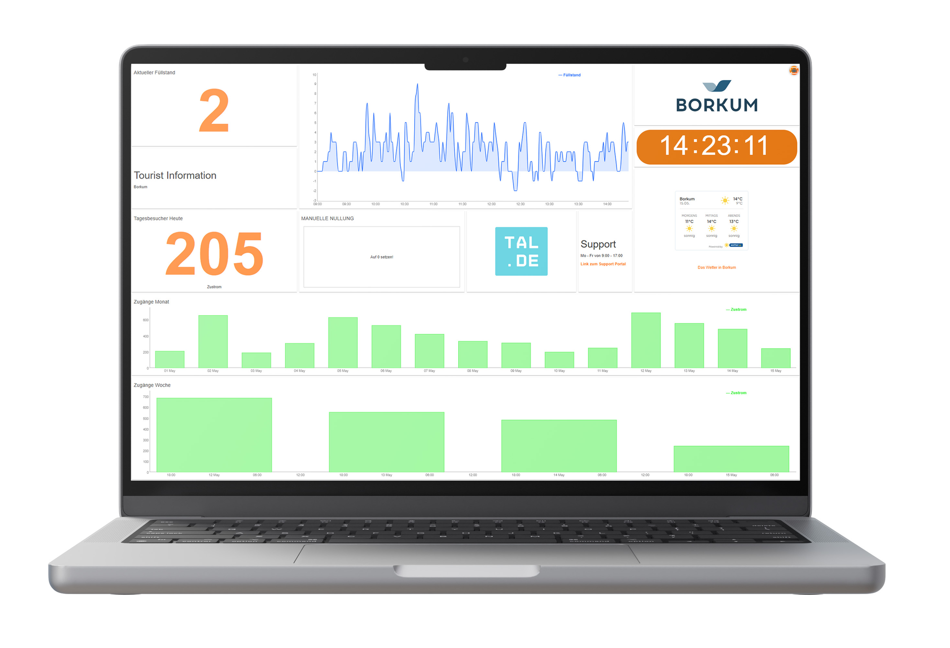 Die Vorteile für die Tourismus-Information Borkum liegen dabei klar auf der Hand. Die erhobenen Daten sind die sichere Basis für optimierte Ressourcenplanung in Sachen Personal und Service. Außerdem lassen sich die Besucherströme einfacher steuern. Da wir vergleichbare Daten über verschiedene Zeiträume auswerten und abgleichen können, steigern wir die Transparenz in den Prozessen und ermöglichen so eine verbesserte Besucherführung für einen effizienteren und nachhaltigeren Tourismus auf Borkum. Damit alle wirklich entspannt Urlaub machen können.